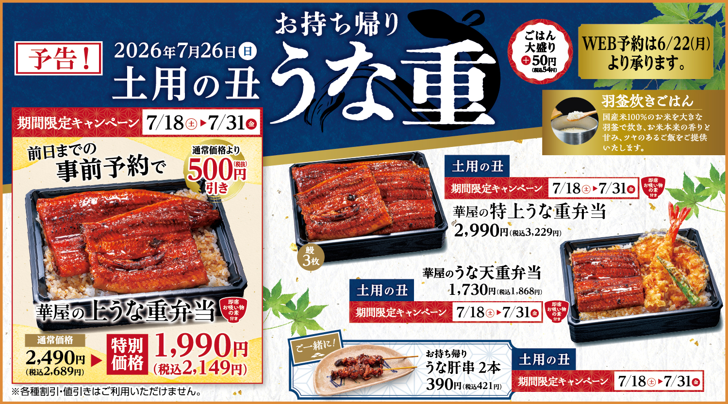 WEBお弁当予約 釜めし商品の受付締切時間変更について |